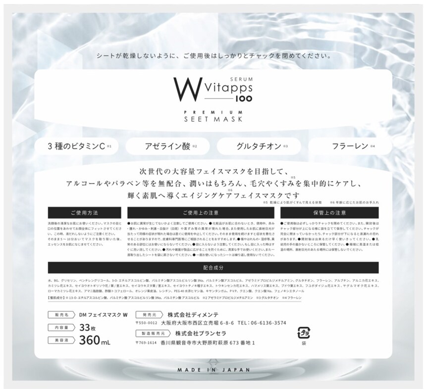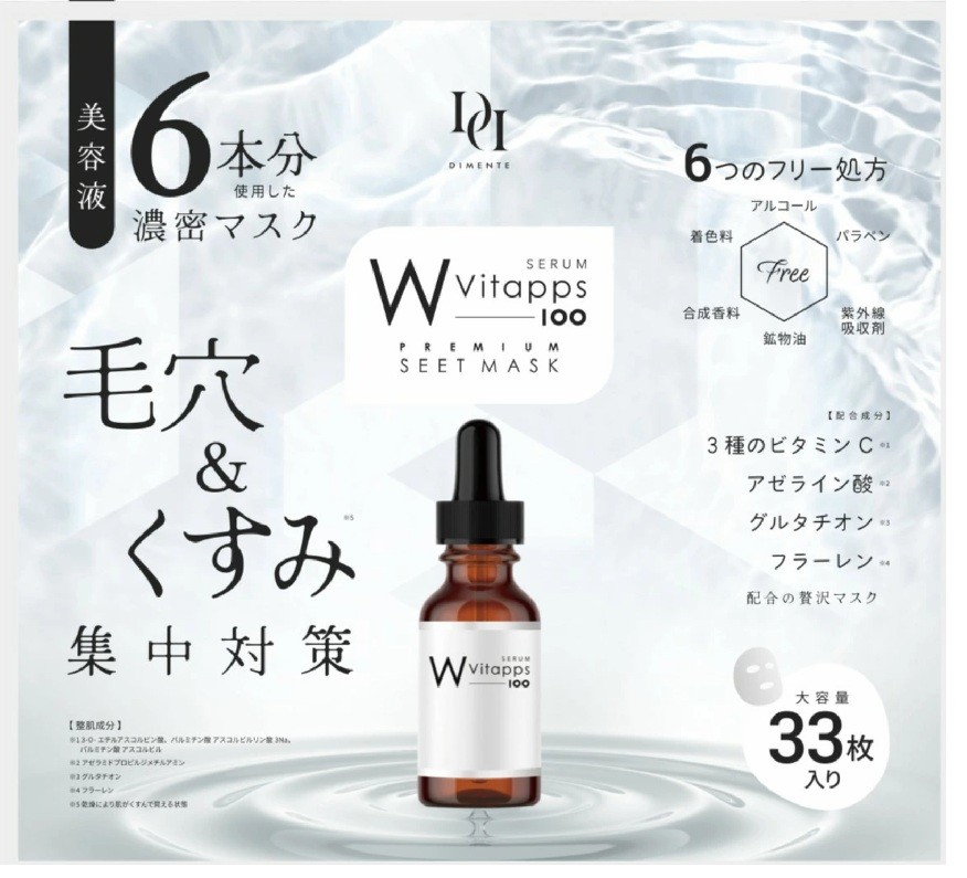 「W Vitapps 100 プレミアムシートマスク」は、1枚にたっぷりの美容液を含んだ高保湿フェイスマスク。毎日のスキンケアに取り入れることで、うるおいに満ちた透明感のある肌へ導きます♪